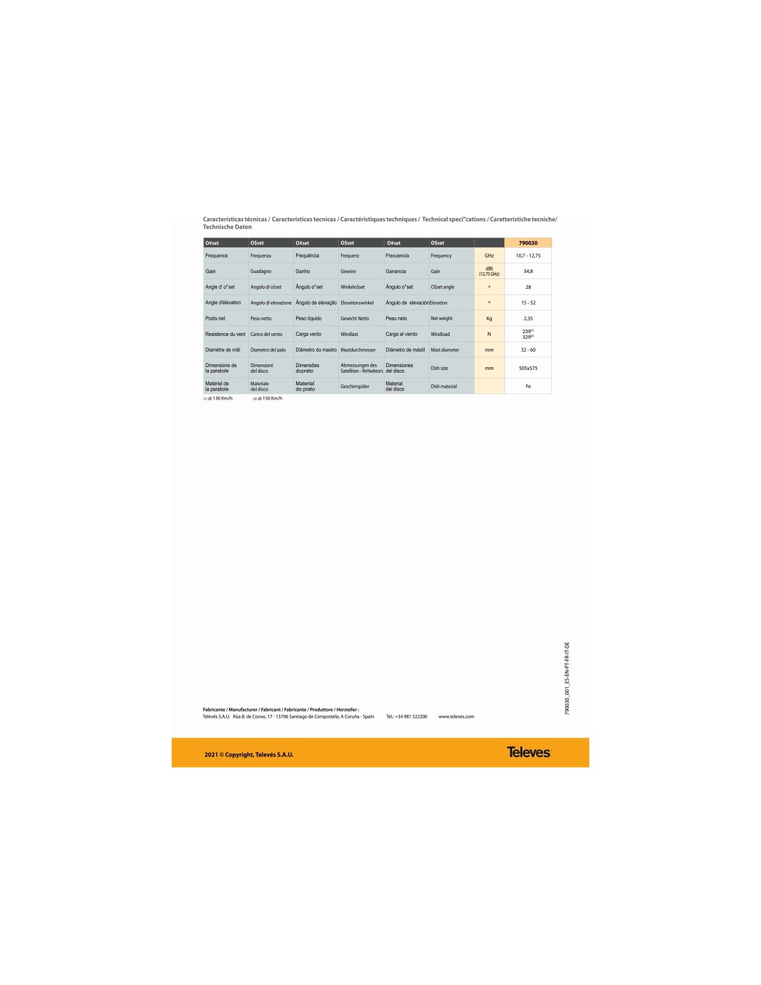 KIT ANTENA PARABOLICA TELEVES 60CM +LNB+