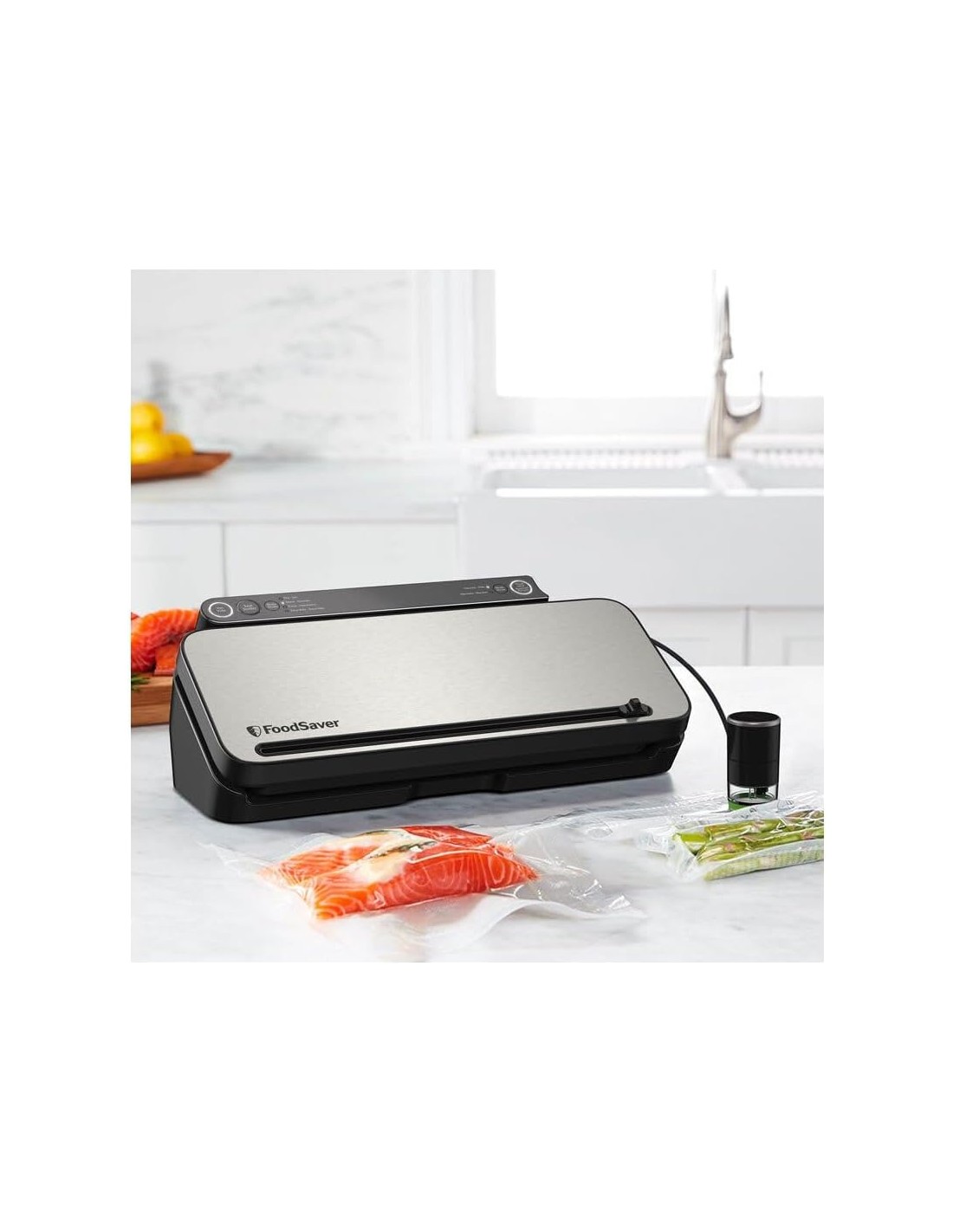 FoodSaver Envasadora al vacío Premium con cánula con adaptador para recipientes integrada, 1 Rollo, 4 bolsas & 4 bolsas