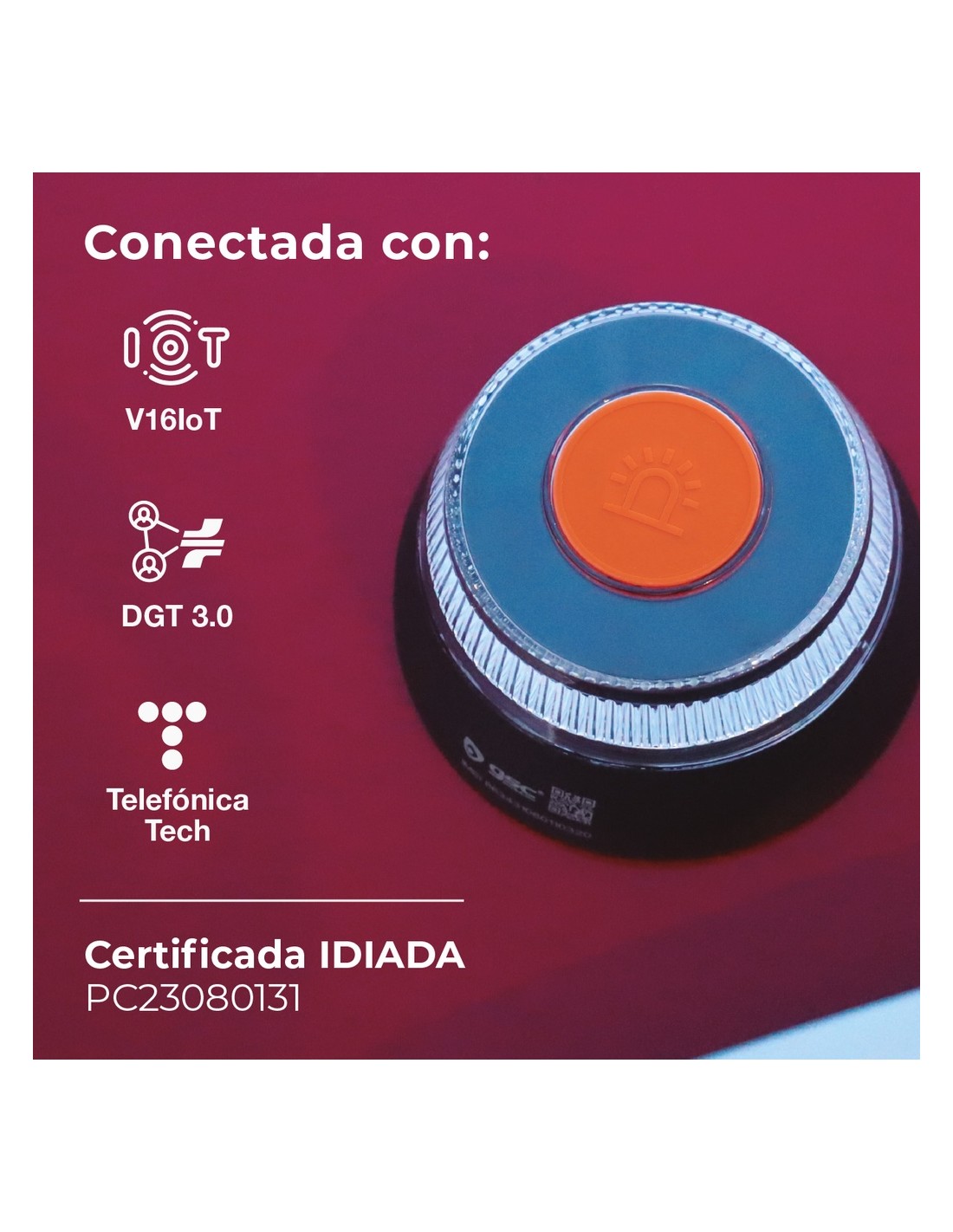 Una vez de enciende, la baliza envía una señal con ubicación precisa, conectándose directamente con el sistema DGT 3.0, lo que permite alertar a otros vehículos. Esta conectividad está asegurada hasta el año 2038, sin costos adicionales (Telefónica Tech).