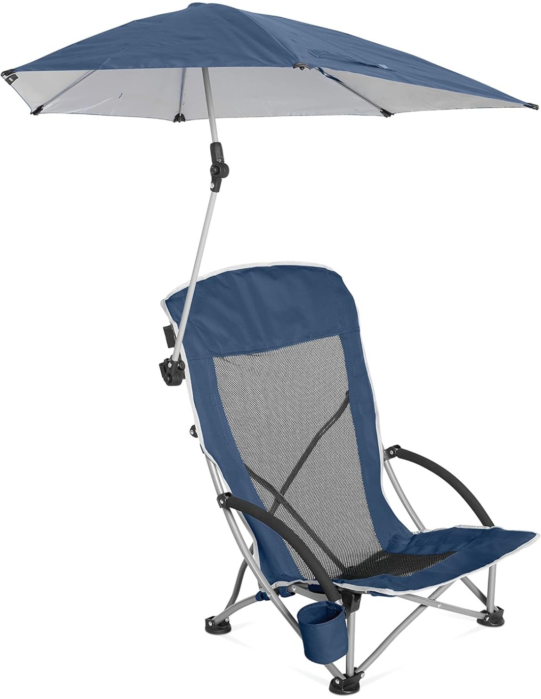 Cadeira de praia Sport-Brella, proteção solar e contra intempéries UPF 50+, com guarda-sol ajustável e porta-copos.